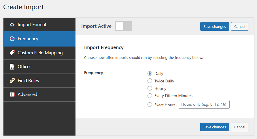 Note that imports might not execute exactly at the chosen frequency due to the way automated tasks in WordPress work. We've written more about 'Automated Tasks' here.