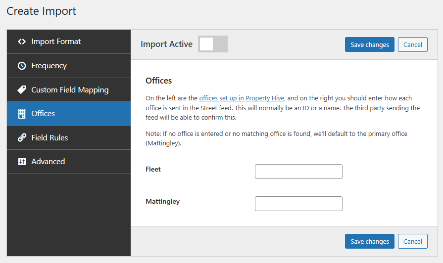 If your agency has multiple offices setup under 'Property Hive > Settings > Offices' you'll likely want to assign properties to the correct office when they're imported.