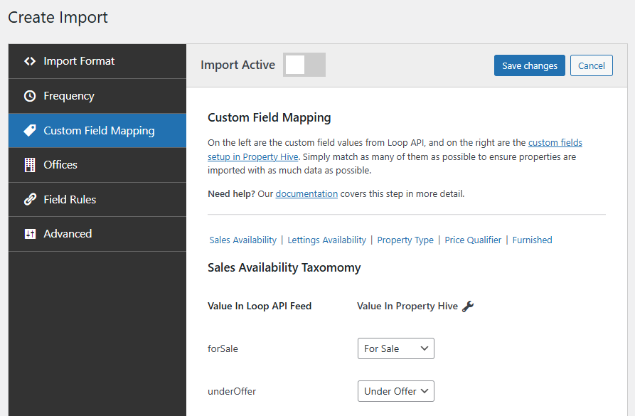 Under the 'Custom Field Mapping' tab you can map data belonging to custom fields sent in the feed to the custom fields you have setup in Property Hive.