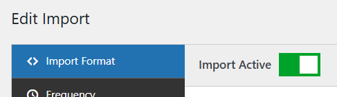 You can also specify whether an import is active or not by editing the import and changing the 'Import Active' toggle: