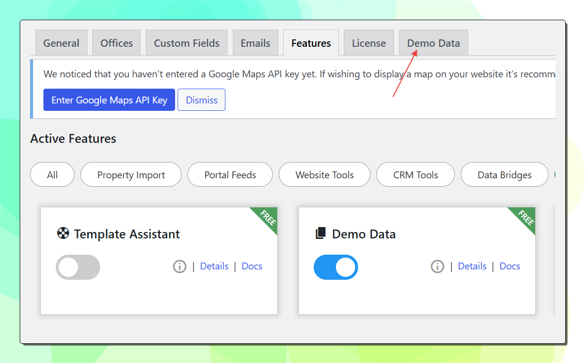 - When Property Hive is activated for the first time you'll be presented with a notification, giving you the option to import demo data. Click 'Import Demo Data'.