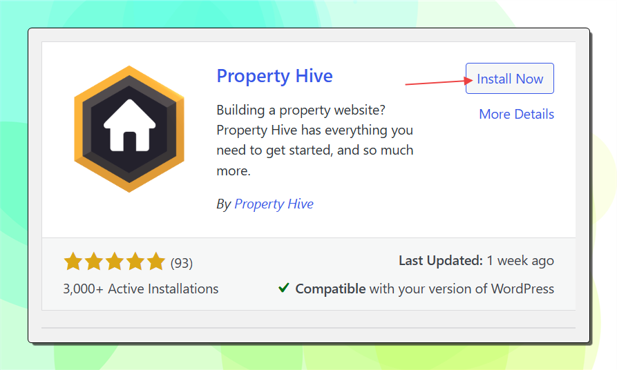 - Locate the 'Property Hive' plugin and click the 'Install Now’ button: