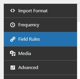When editing an import you’ll be able to access field rules from the left hand tab: