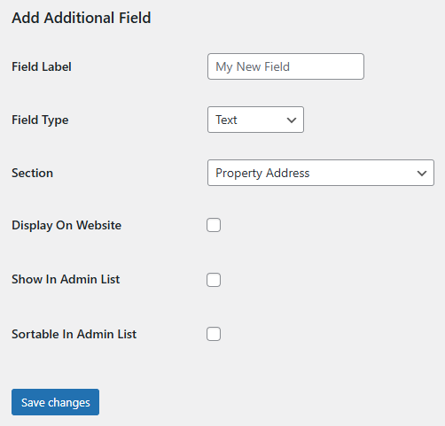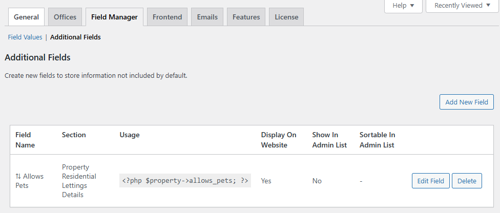 To access and customise the custom fields navigate to 'Property Hive > Settings > Field Manager > Additional Fields':